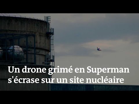ビュゲの原子力発電所の上空を飛び回り,挙句の果てに使用済み核燃料貯蔵庫に衝突したスーパーマン型無人航空機.犯人はグリーンピース (フランス語)